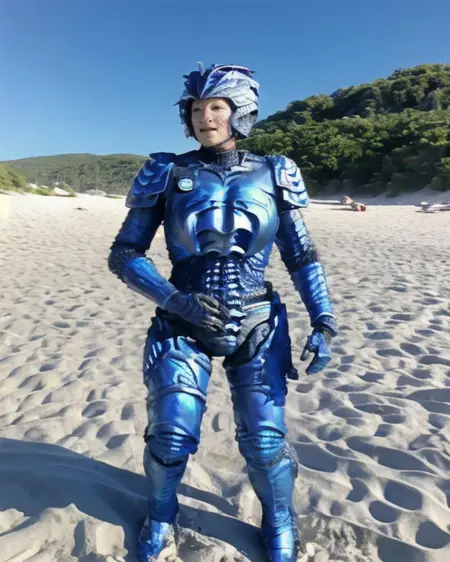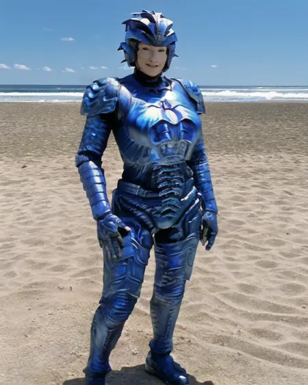 2つの異なる衣装があります:blue metal sci-fi armor suit と hugoboss uniform。