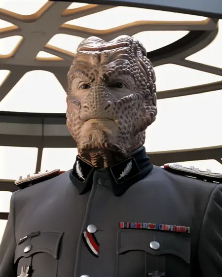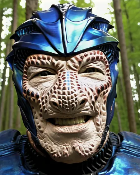 プロンプトキーワードはhirogenです。他の有効な単語:alien man、leathery bumpy skin、black eyes。