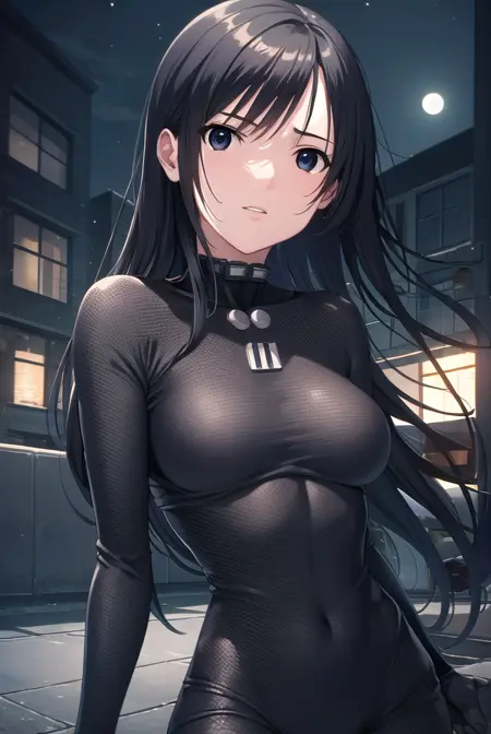 reika shimohira, long hair, black hair, (black eyes:1.5),