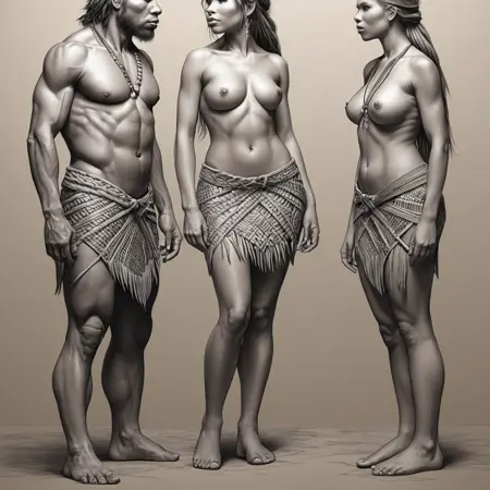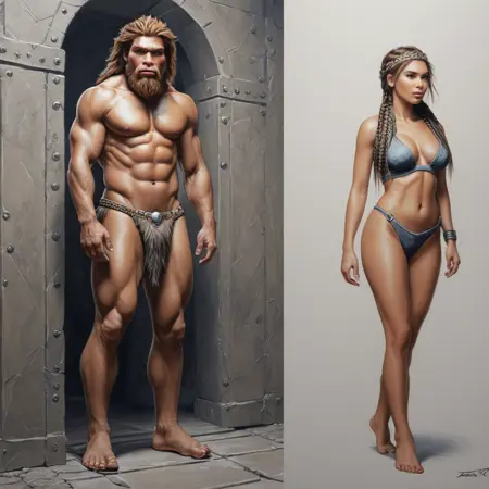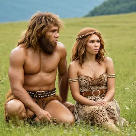 一个试图结合之前两个模型“尼安德特人女性v1”和“男性v1”的LoRA模型,添加了早期人类服装和住所的关键词:原始服装、小屋。还添加了几种编发发型。