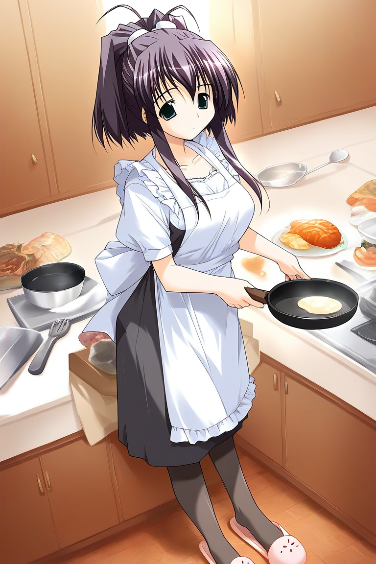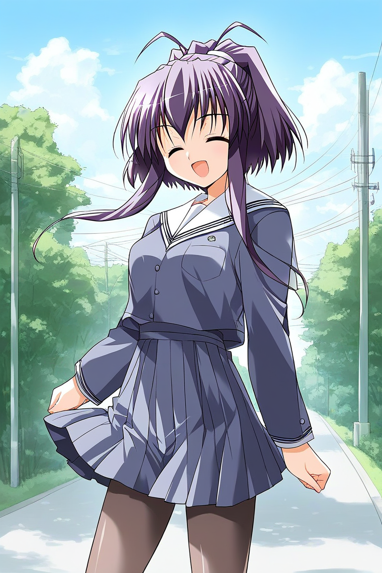 ImazekiRinko, ponytail, green eyes, purple hair, antenna hair, sidelocks,
