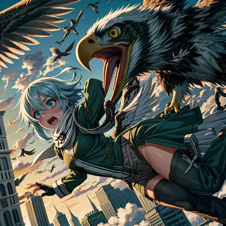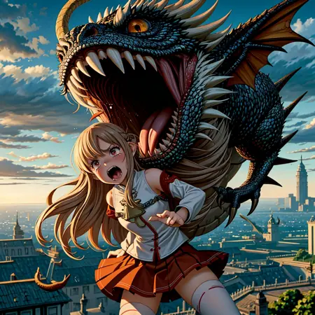 제가 제 가장 좋아하는 캐릭터가 뒤에서 거대한 전설적인 새나 드래곤에게 공격받고 거의 먹히는 장면을 생성하는 LoRA를 만들었습니다. 테스트 결과, 실제로 캐릭터가 이 생물들의 입에 있거나 삼켜지는 장면이 생성되었습니다. 그러나 일부 경우 동물 코스튬처럼 보이는 경우가 있어, 특정 프롬프트를 사용하면 캐릭터가 전설적인 새나 드래곤의 코스튬을 입은 장면이 생성될 수 있습니다. 또한, 모든 원본 이미지가 구름 위에 설정되어 있었기 때문에, 이를 도시 환경으로 성공적으로 전환하여 캐릭터가 다양한 장소에서 공격받는 장면을 만들기 쉽게 만들었습니다.