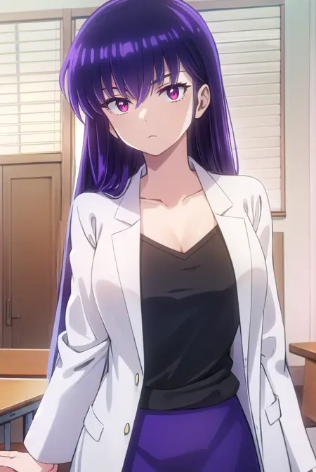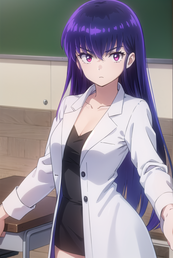 실험복, (흰색 실험복:1.5), 어깨뼈, 셔츠, 검은 셔츠, 치마, 연필 치마, 보라색 치마,