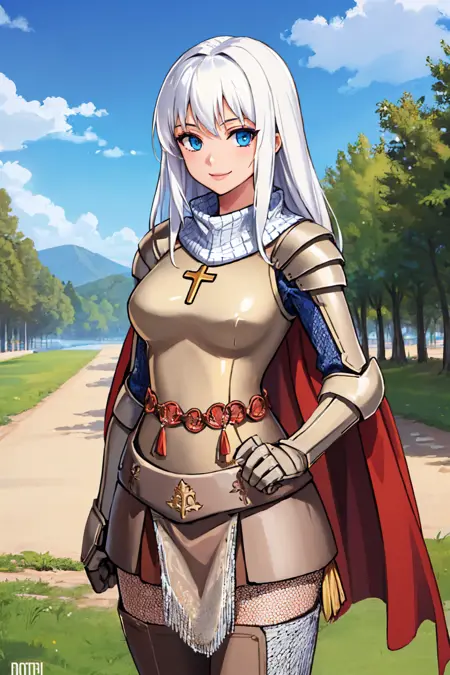 トリガー+追加タグ: ragnarokknight, armor, breastplate, cross, pauldrons, cape, gauntlets, chainmail