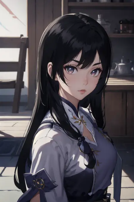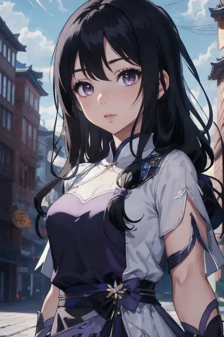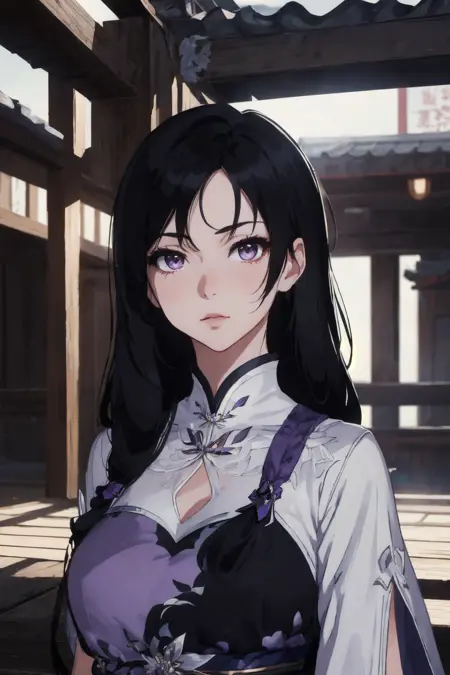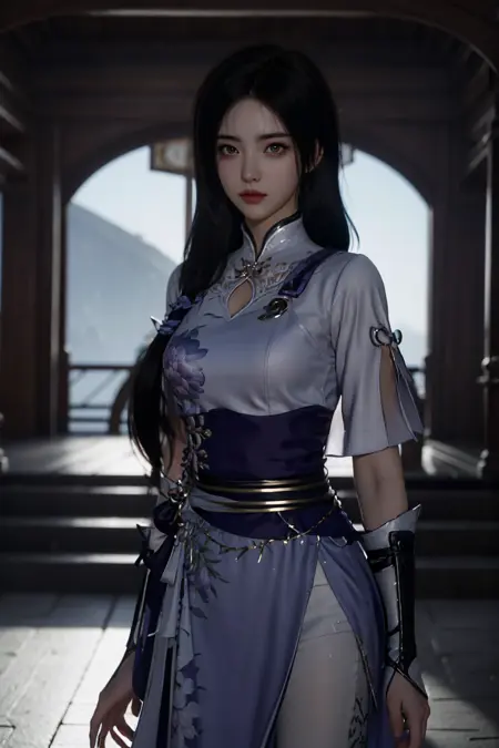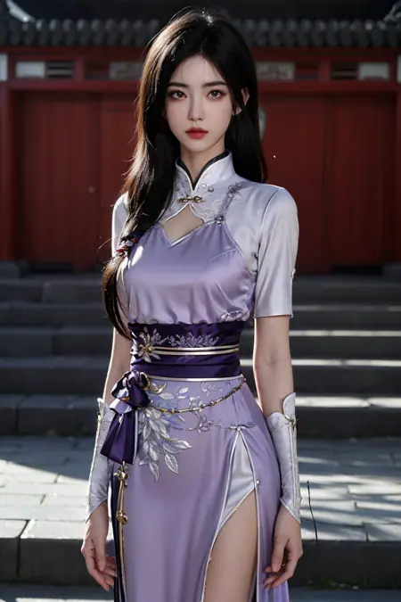 **推荐提示词:**lingyueru,purple dress,black hair,long hair