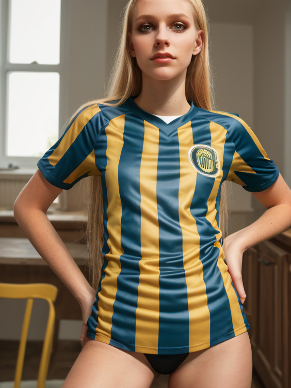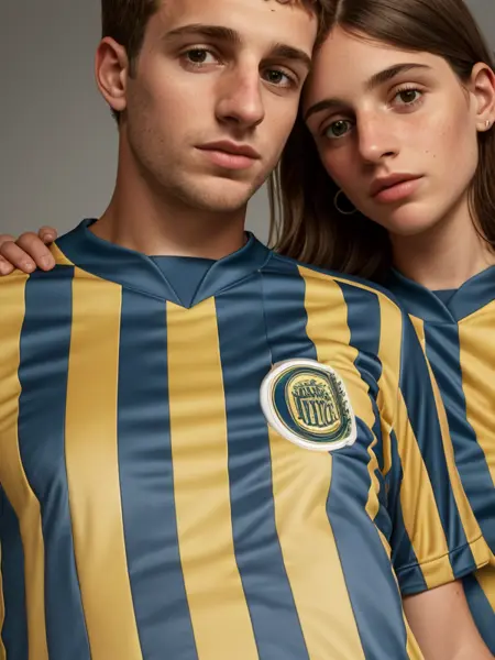 vertically striped shirt(伝統的な青と黄色の縦縞)