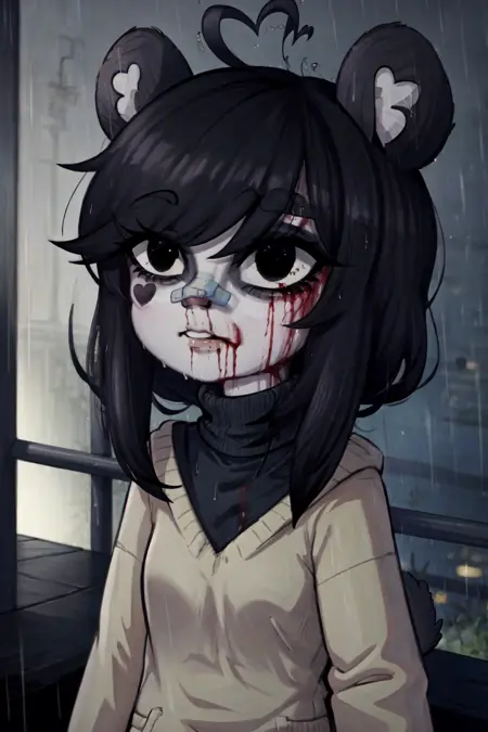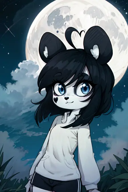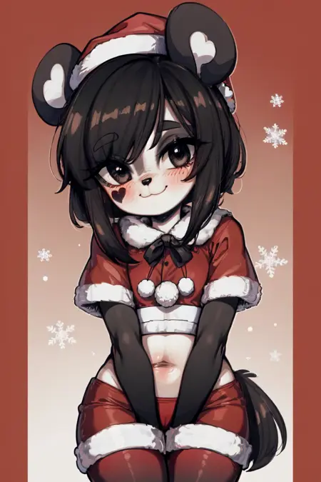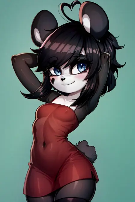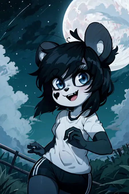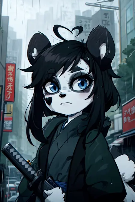 几乎我的所有 LoRA 都不完美。她的面部画得一直很好,这没有问题,问题出在她的身体上。熊猫的毛色花纹很难复现,这是这个 LoRA 唯一的主要问题。