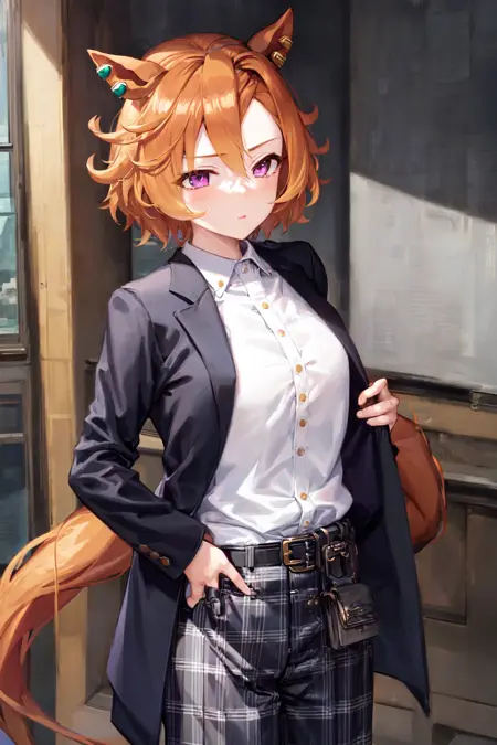 - 1girl, solo, horse girl, horse tail, horse ears, animal ears, tail through clothes,