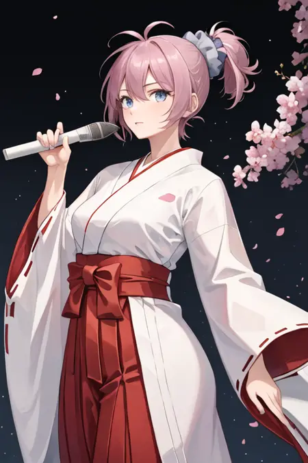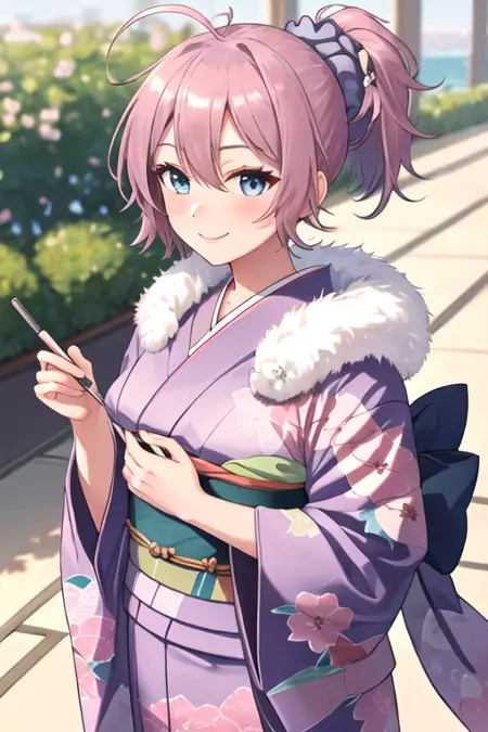 The trigger word is aoba_kantaicollection, and the recommended tags are best quality, masterpiece, highres, solo, {aoba_kantaicollection:1.15}, ponytail, scrunchie, blue_eyes, purple_hair, pink_hair, blue_scrunchie, serafuku, messy_hair, breasts, short_hair, hair_ornament, hair_scrunchie.