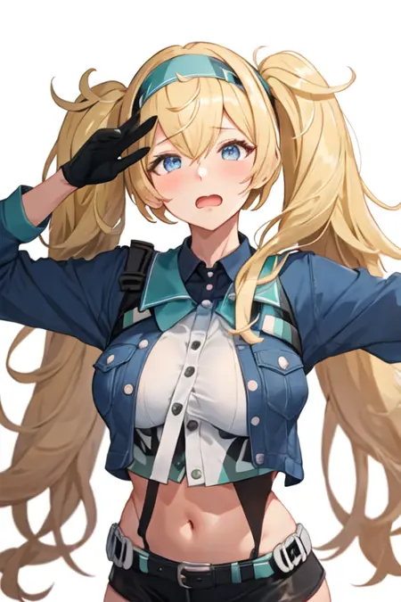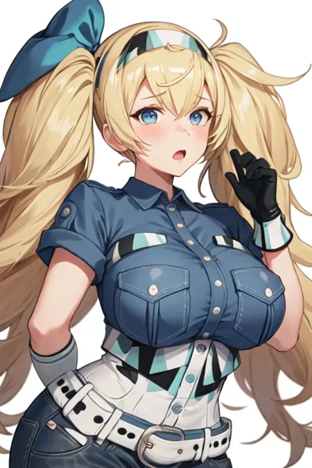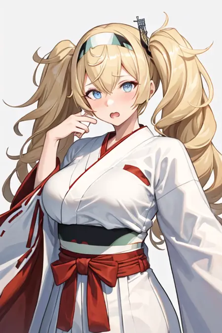 触发词为 gambier_bay_kantaicollection,推荐标签为:best quality, masterpiece, highres, solo, {gambier_bay_kantaicollection:1.15}, blonde_hair, long_hair, twintails, hairband, blue_eyes, breasts, large_breasts, hair_between_eyes, open_mouth, blush。