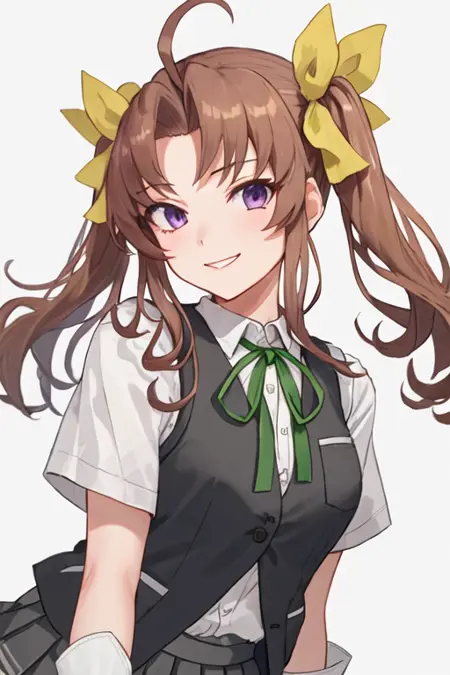 触发词为 kagerou_kantaicollection,推荐标签为:best quality, masterpiece, highres, solo, {kagerou_kantaicollection:1.15}, brown_hair, twintails, ribbon, long_hair, hair_ribbon, ahoge, purple_eyes, green_ribbon, vest, neck_ribbon, smile, white_ribbon, yellow_ribbon。