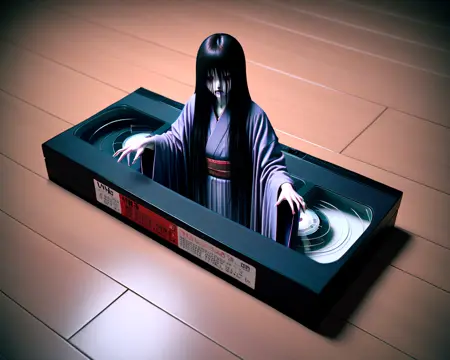 尽管汤姆警告了他,杰克还是拿起录像带的标签,好奇地凝视着。“没事的,我家里连VHS录像机都没有,”他安慰自己。标签上印着令人不安的文字:“禁播影像”,下面是一幅陈旧井口的插图。就在杰克凝视标签时,一道诡异的光突然从标签中射出,一个阴森的存在从光中显现。