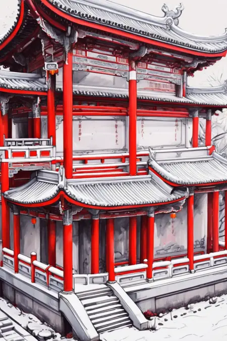 (Sino 또는 China를 사용할 수 있으며, "traditional architecture"는 필수 프롬프트입니다.)