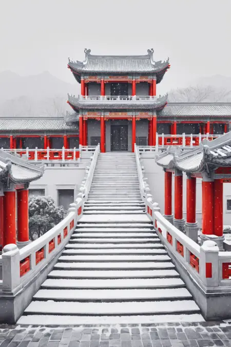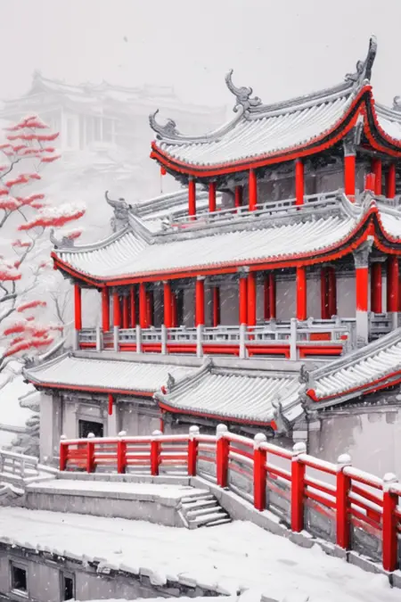 눈이 오는 날 빨간 테마 건축물은 더욱 몰입감 있는 경험을 제공할 수 있습니다. 더 나은 결과를 위해 가상 유토피아 모델과 함께 사용하는 것을 권장합니다~