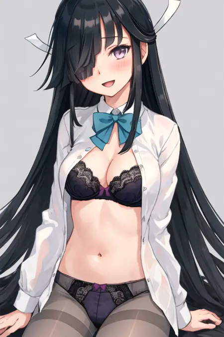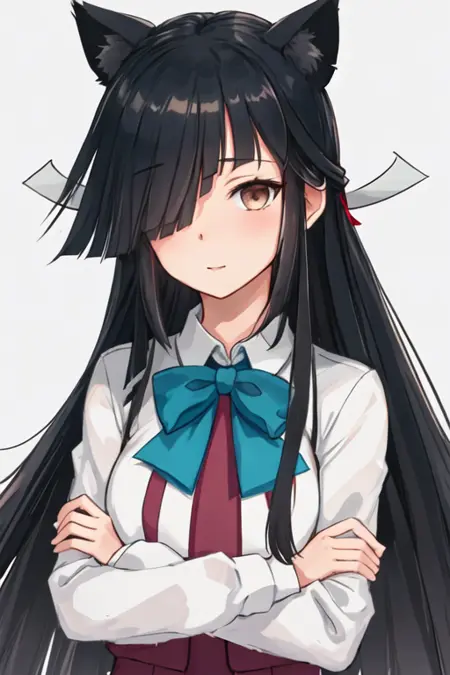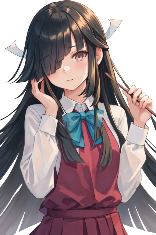 The trigger word is hayashimo_kantaicollection, and the recommended tags are best quality, masterpiece, highres, solo, {hayashimo_kantaicollection:1.15}, long_hair, black_hair, hair_over_one_eye, ribbon, hair_ribbon, very_long_hair, bow, bowtie, brown_eyes.