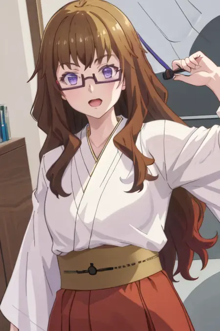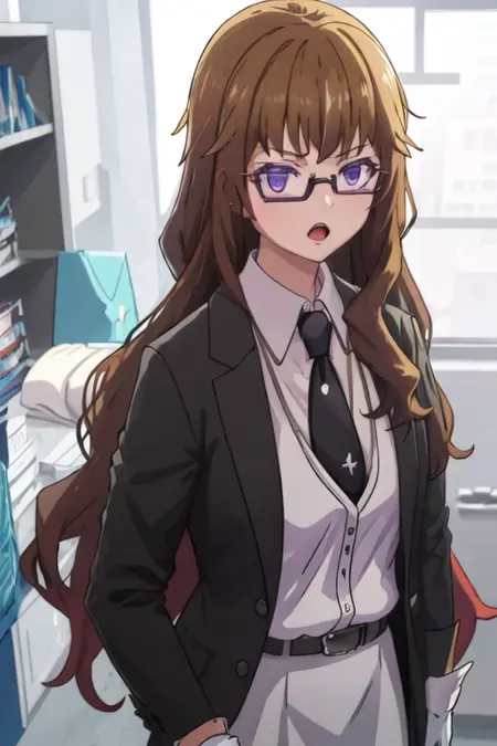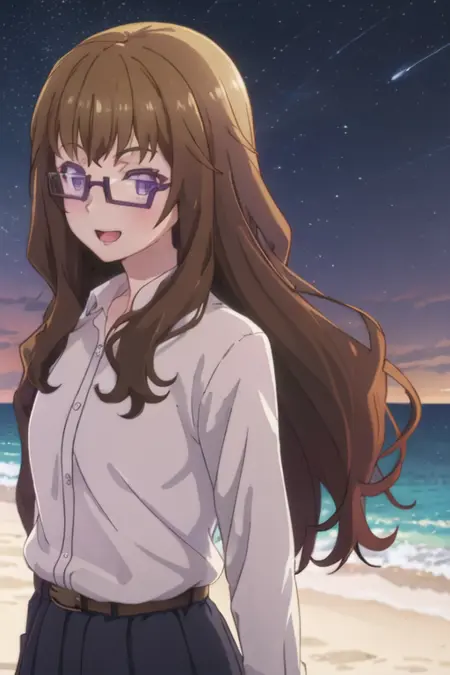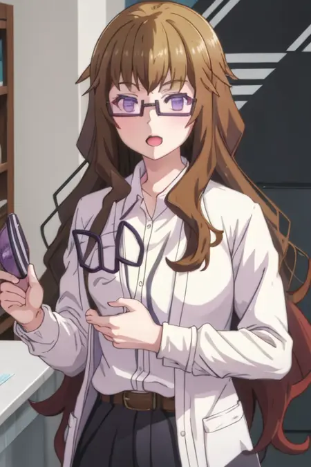触发词为feynman_yoshino_renaiflops,推荐标签为:best quality, masterpiece, highres, solo, {feynman_yoshino_renaiflops:1.15}, brown_hair, long_hair, glasses, purple_eyes, semi-rimless_eyewear, under-rim_eyewear, bangs, open_mouth。