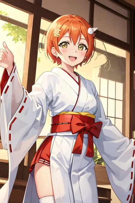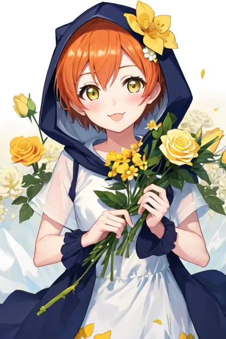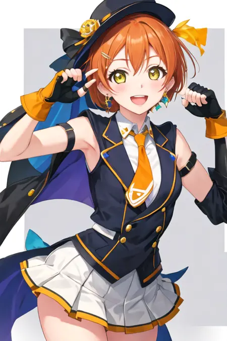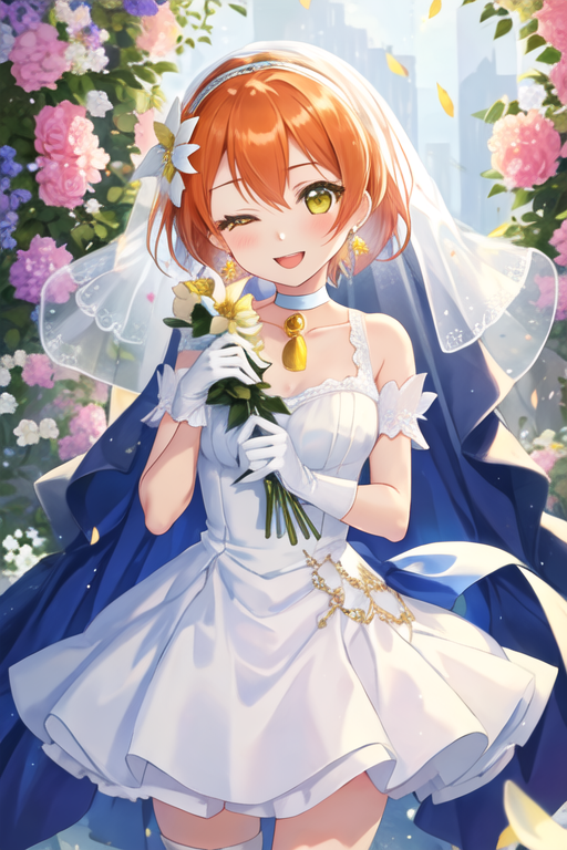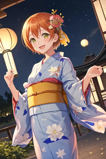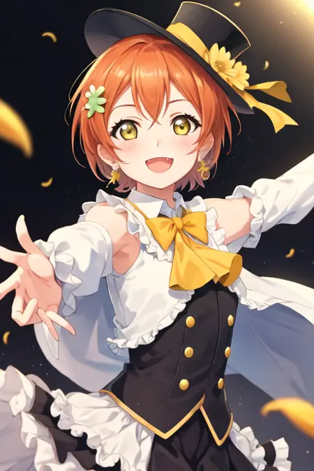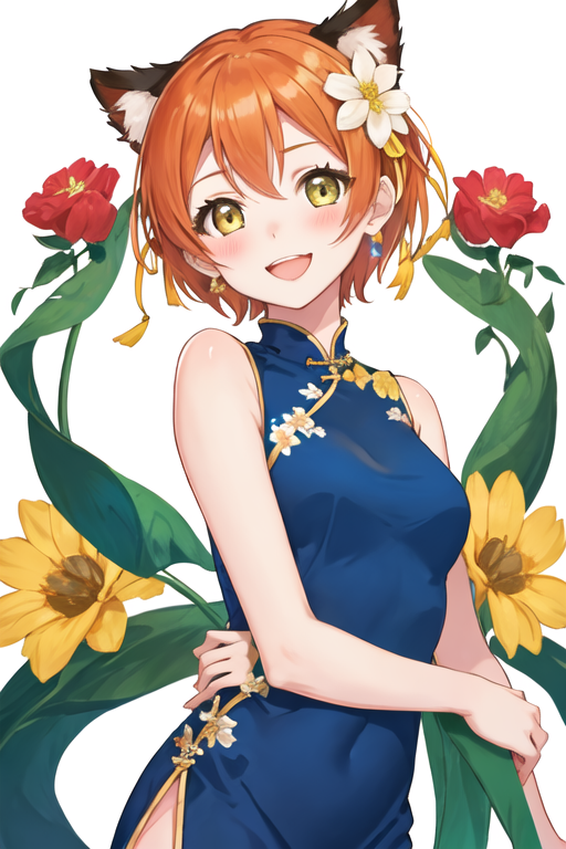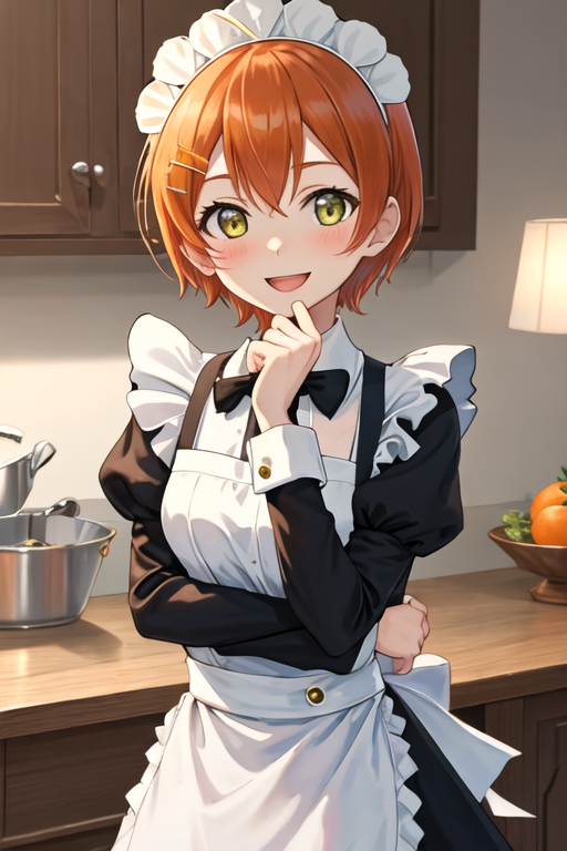 触发词为 hoshizora_rin_lovelive,推荐标签为:best quality, masterpiece, highres, solo, {hoshizora_rin_lovelive:1.15}, short_hair, orange_hair, smile, yellow_eyes, blush, open_mouth, green_eyes, hair_ornament。