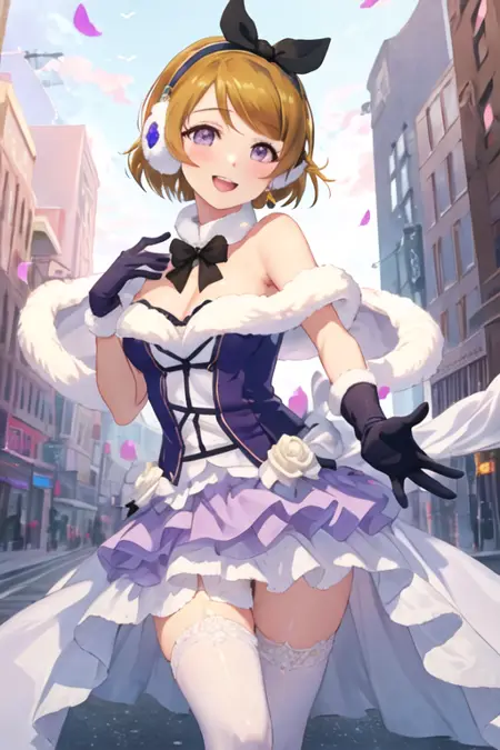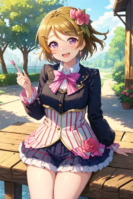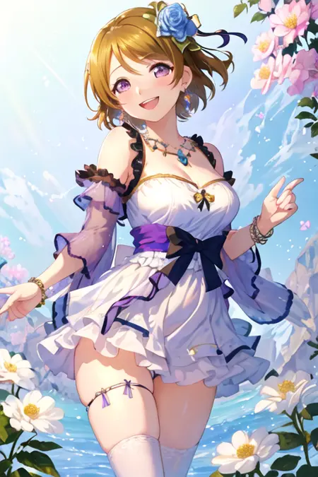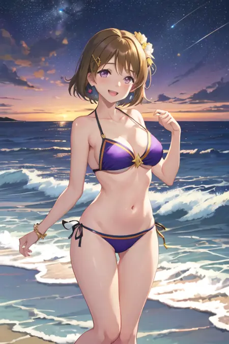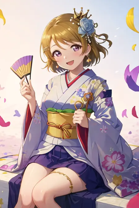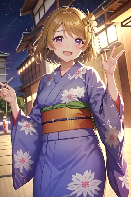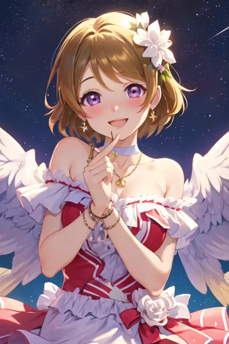 触发词为 koizumi_hanayo_lovelive,推荐标签为:best quality, masterpiece, highres, solo, {koizumi_hanayo_lovelive:1.15}, short_hair, brown_hair, purple_eyes, smile, blush, open_mouth, hair_ornament。