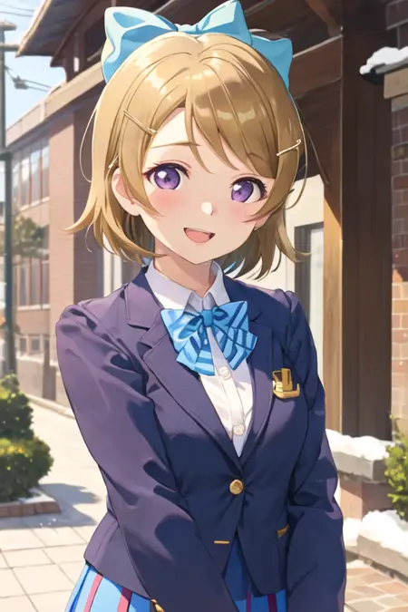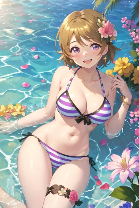 The trigger word is koizumi_hanayo_lovelive, and the recommended tags are best quality, masterpiece, highres, solo, {koizumi_hanayo_lovelive:1.15}, short_hair, brown_hair, purple_eyes, smile, blush, open_mouth, hair_ornament.