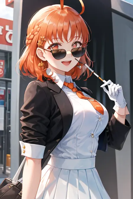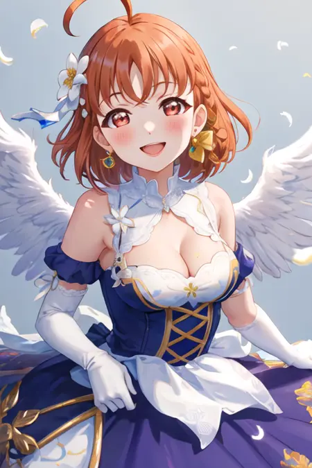 The trigger word is takami_chika_lovelivesunshine, and the recommended tags are best quality, masterpiece, highres, solo, {takami_chika_lovelivesunshine:1.15}, orange_hair, red_eyes, short_hair, ahoge, bangs, smile, blush, braid, hair_ornament, open_mouth, bow, side_braid, hair_bow, breasts.