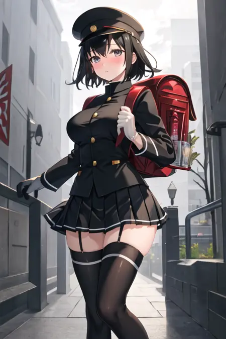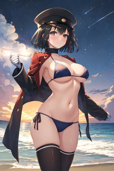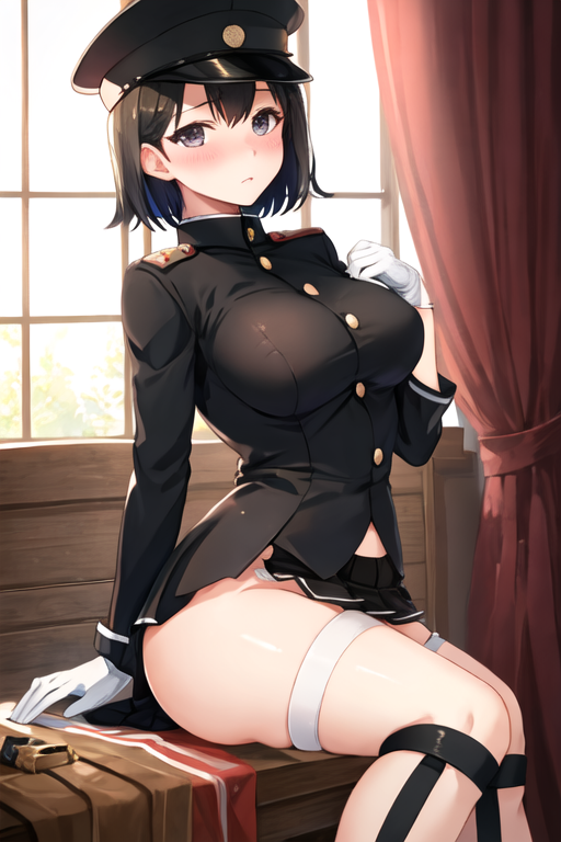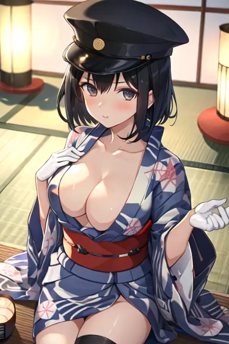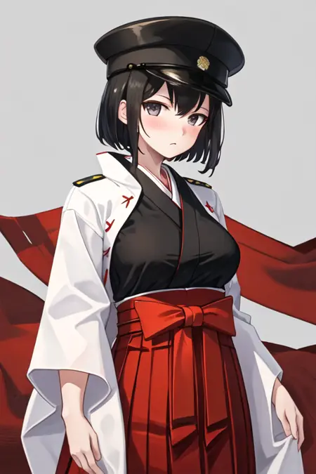 The trigger word is akitsu_maru_kantaicollection, and the recommended tags are best quality, masterpiece, highres, solo, {akitsu_maru_kantaicollection:1.15}, black_hair, short_hair, hat, peaked_cap, black_eyes, breasts, military, large_breasts, blush.