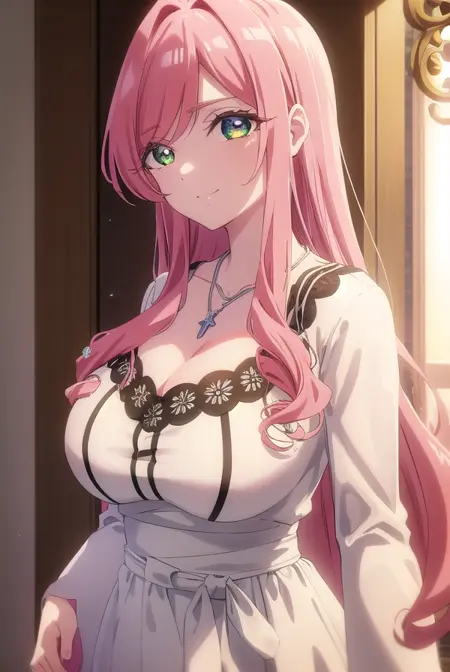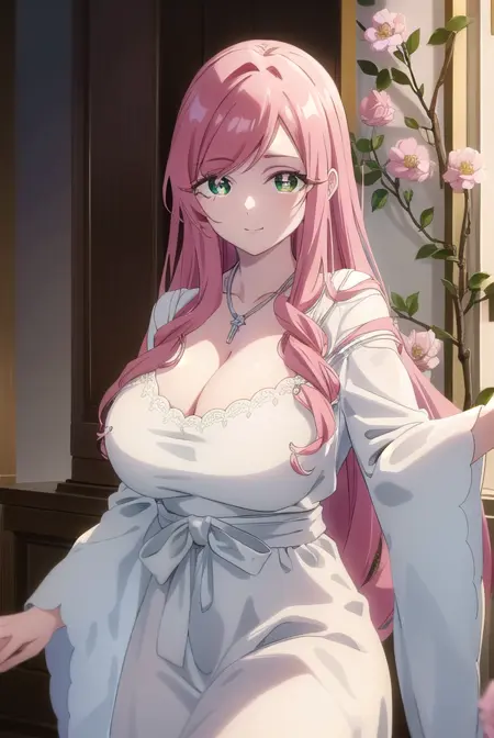 hahari hanazono,长发,刘海,(绿眼:1.2),粉发,花朵,发饰,