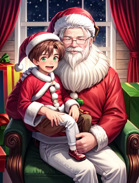 トレーニングデータには、サンタの膝に座る子供と大人の両方が含まれているため、適切なプロンプトを使えば、どちらも生成できると思います。ただし、生成には責任を持って取り組んでください。楽しく生成して、よいホリデイを!