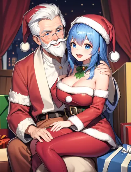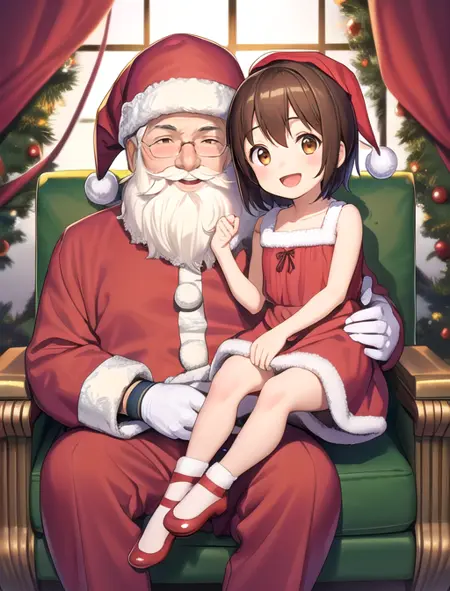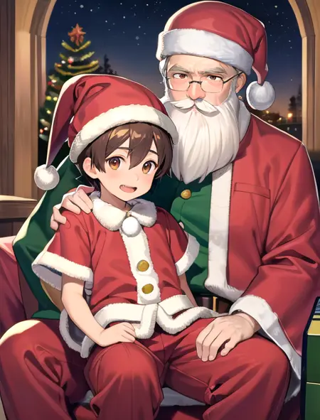 追加で役立つワード:1人の男の子と1人の女の子(サンタと女の子用)または 2人の男の子(サンタと男の子用)、サンタの膝に座る
