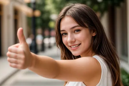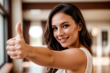 Prompt: arm stretching,thumbs up,