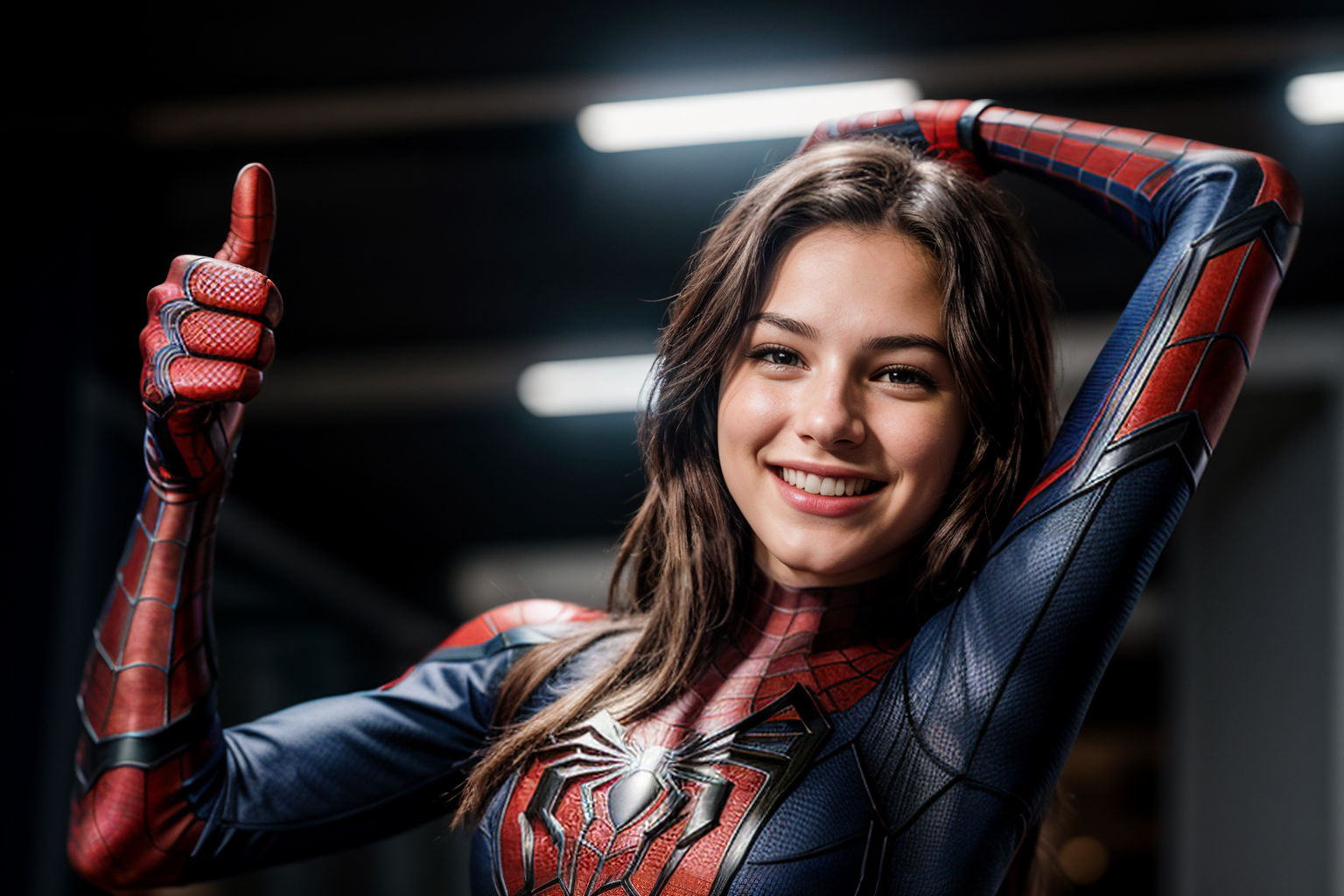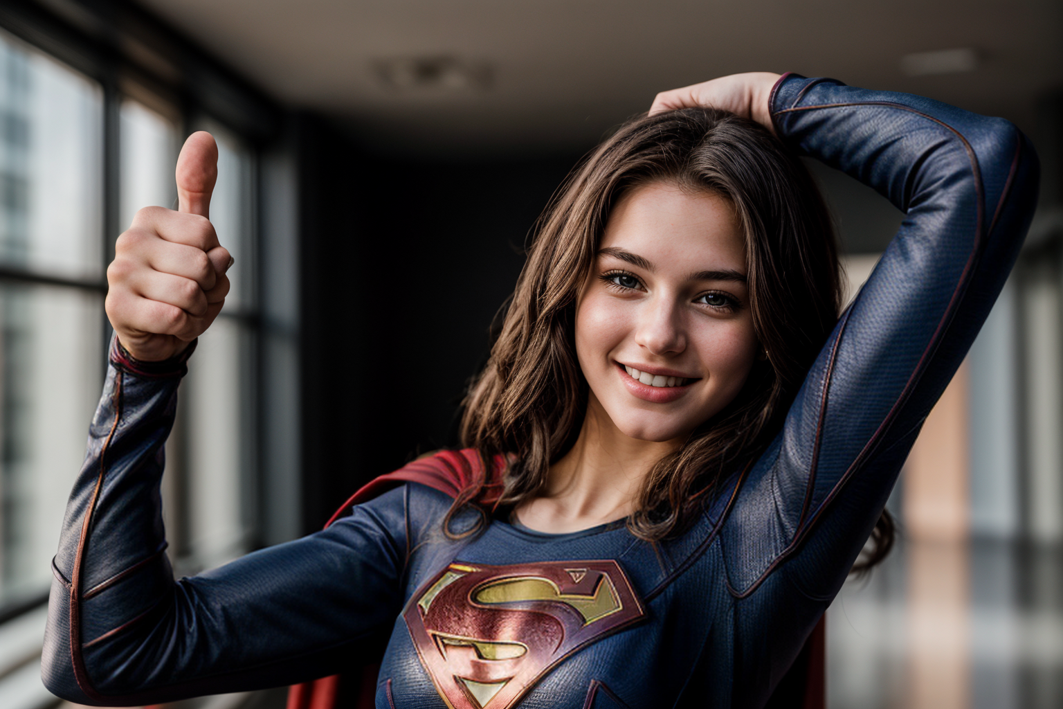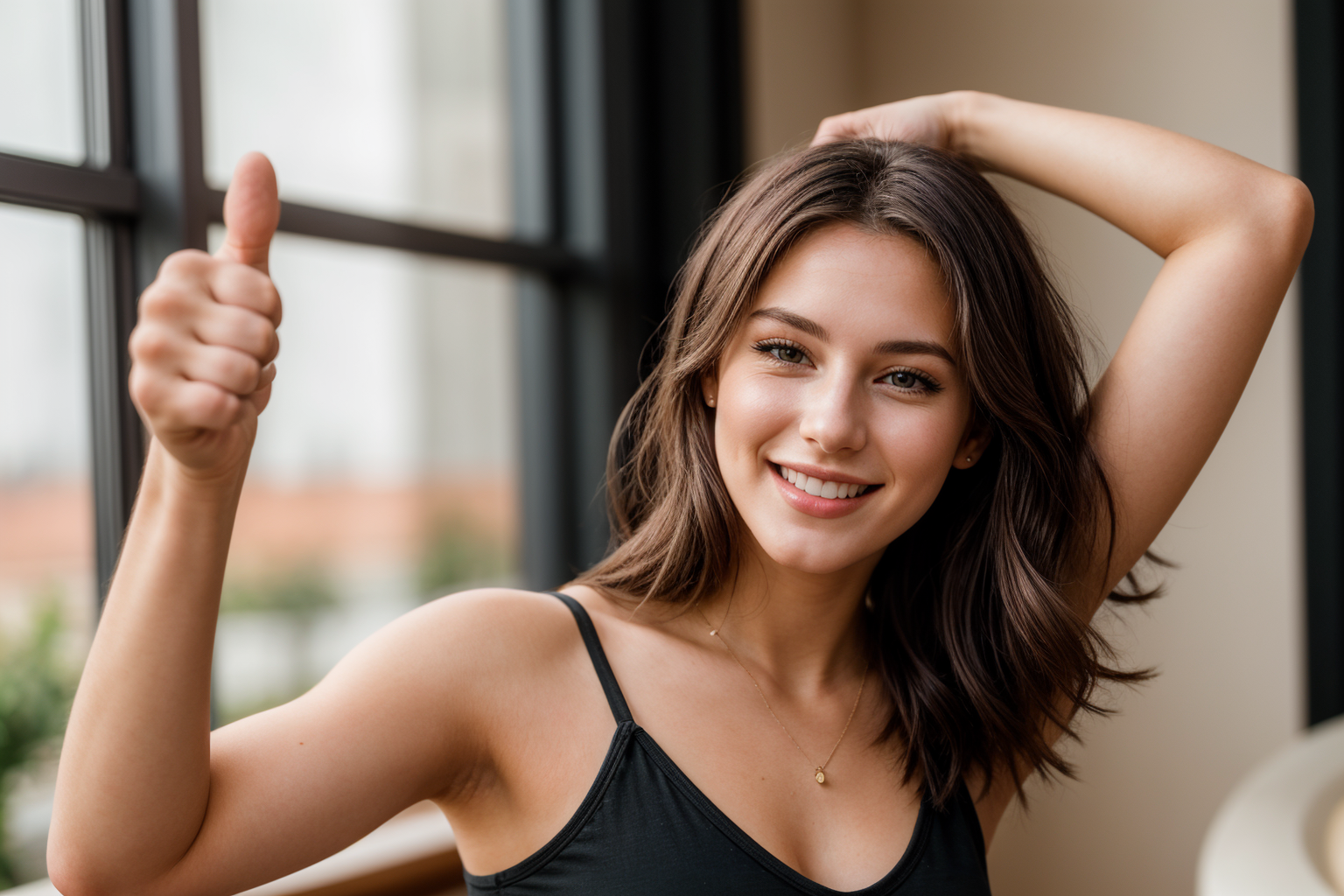 Prompt: arm stretching,thumbs up,