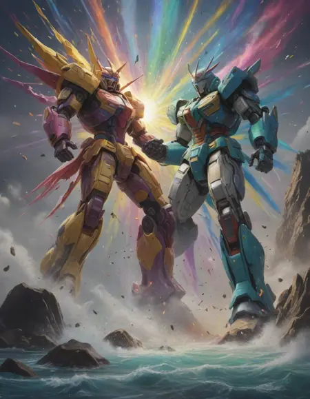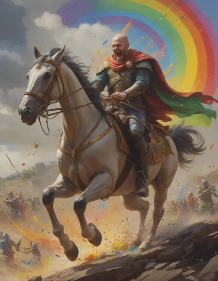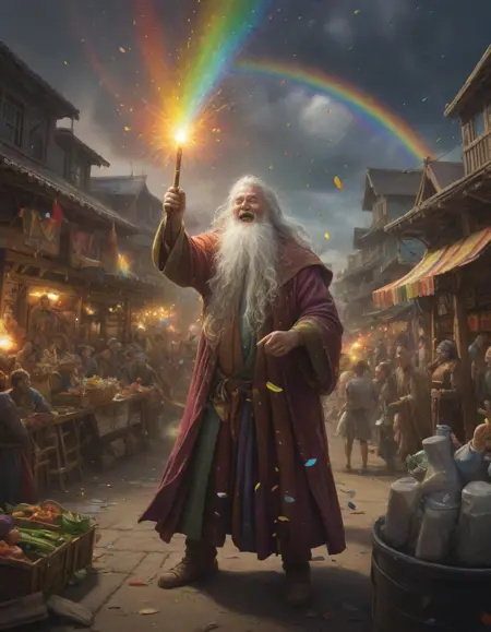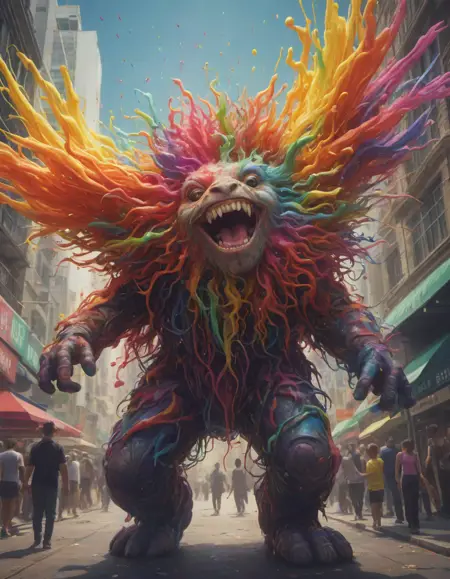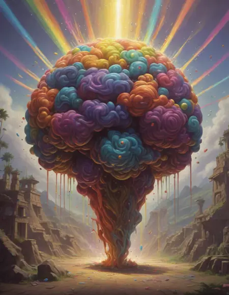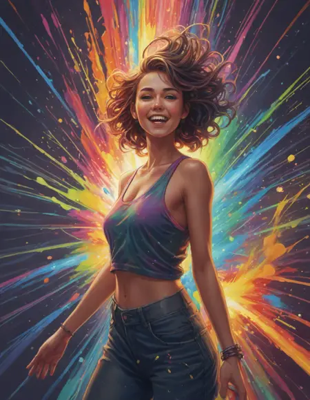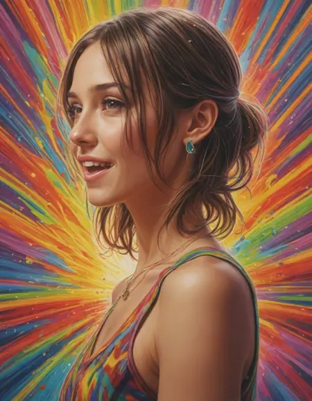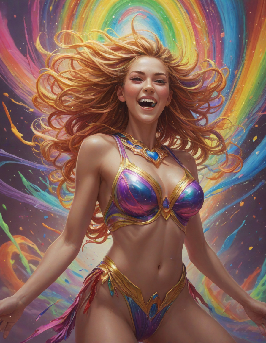 A rainbow exploding with joy . Suggested by 13b llama. Examples at 4-5 strength