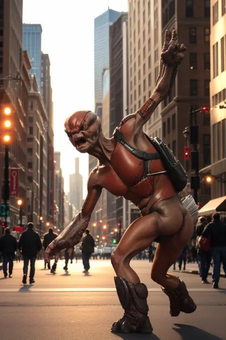 ゲーム『ハロー』に登場するエイリアン種族、通称「グラント」。トリガー語は「alien」。どのような衣装を求めるかに応じて、主に「armor, helmet, mask」というタグを活用し、それらをポジティブとネガティブプロンプトの間で移動させ、必要に応じて括弧を使って重みを付けることを推奨します。これにより、裸体から重装甲までさまざまな形で描画することが非常にうまくいきます。