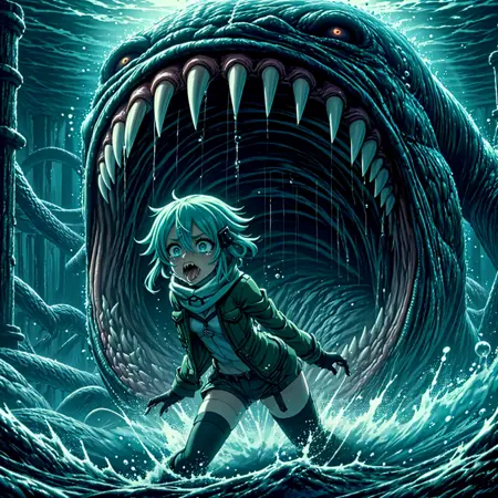 Being chased by a giant monster underwater.