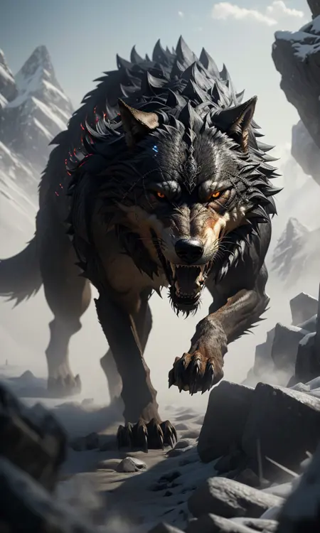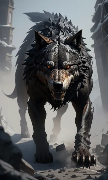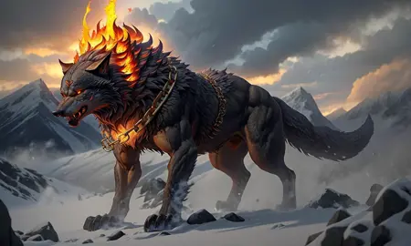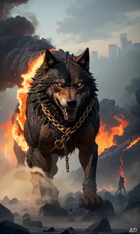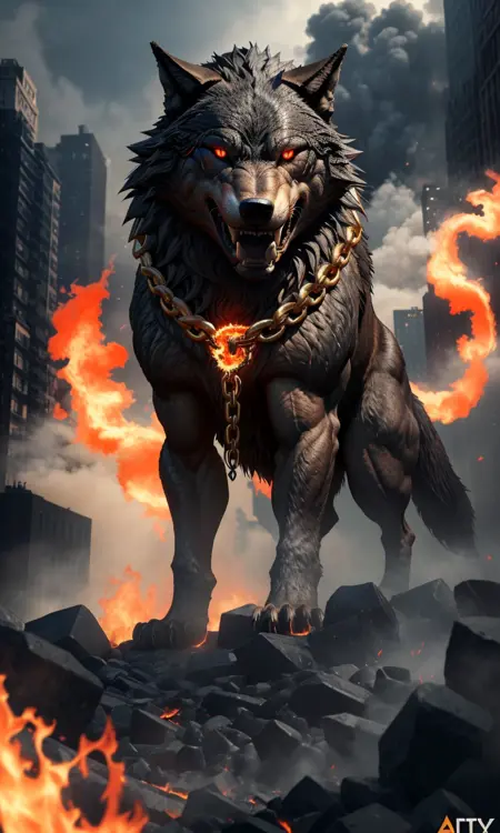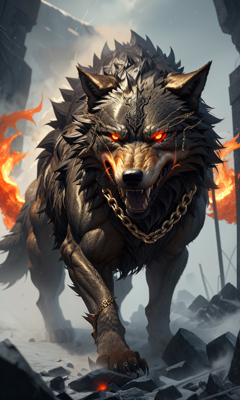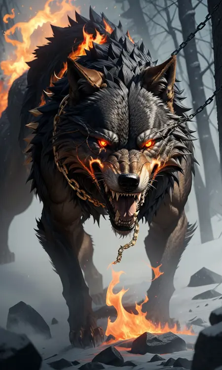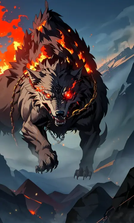 Useful prompts are giant wolf, chains, flames, glowing eyes. All this is optional, you can just simply use the keyword.