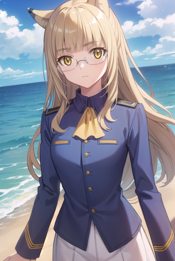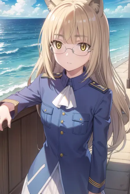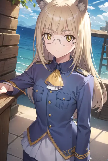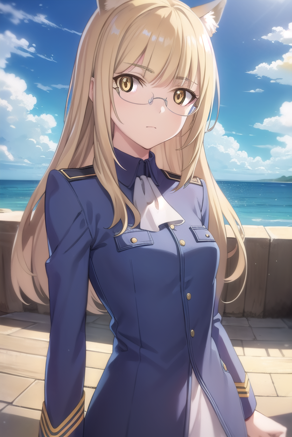 perrine clostermann, long hair, blonde hair, animal ears, (yellow eyes:1.5), glasses, dog ears,