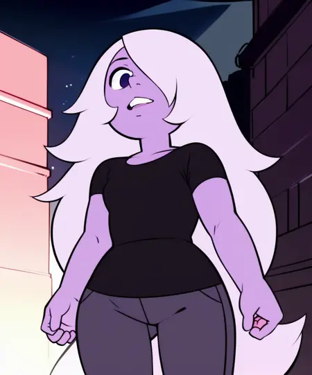 Reinforcement Tags: Humanoid,not furry,purple skin,purple and black pants,opaque glasses,**