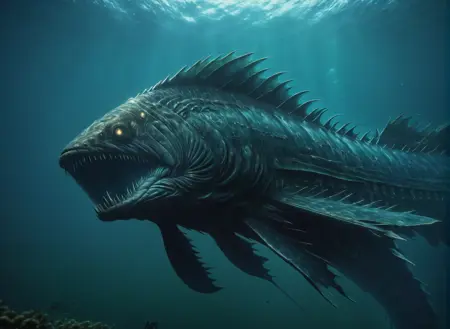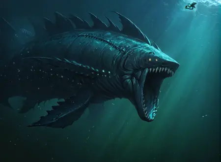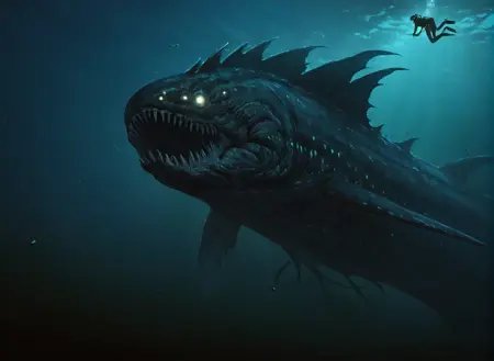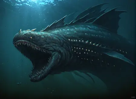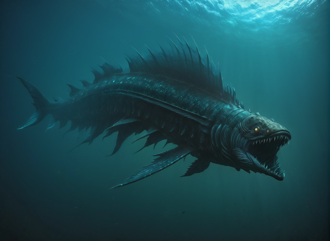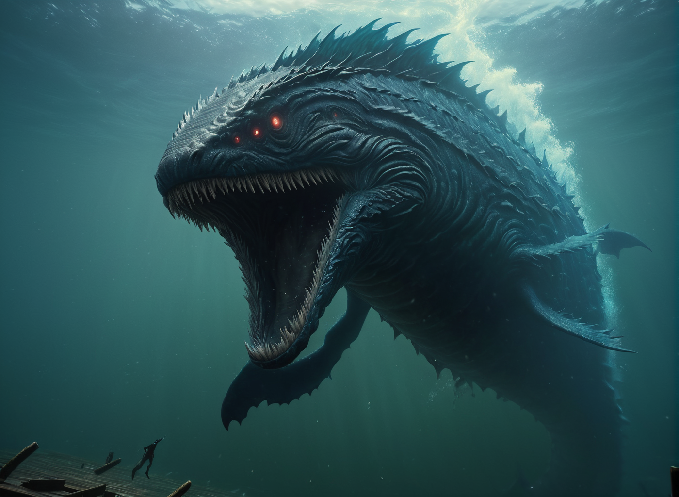 This model was trained to generate images of the mythical leviathan, a sea monster that lurks the depths of the ocean