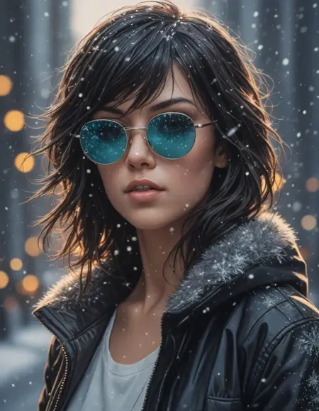 장면에 반짝이는 눈송이를 추가하세요. 따뜻하게 지내세요! 4-5 강도의 예시