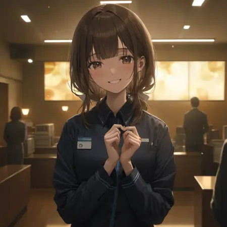 famimaU, employee uniform, japan, 1girl, solo, shirt,