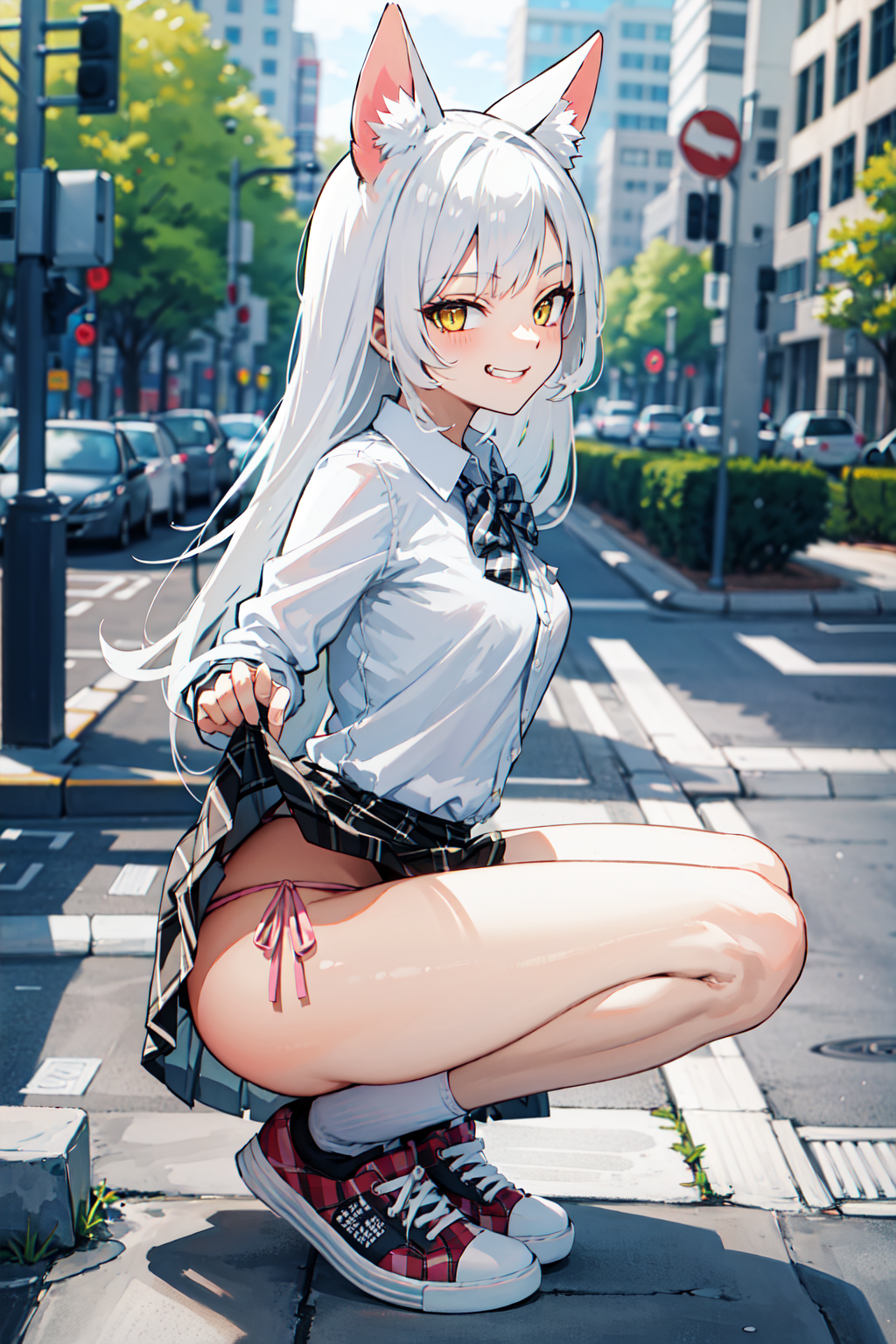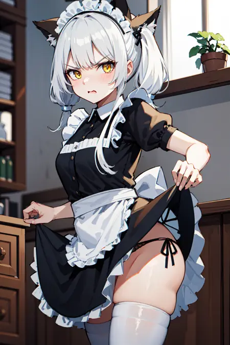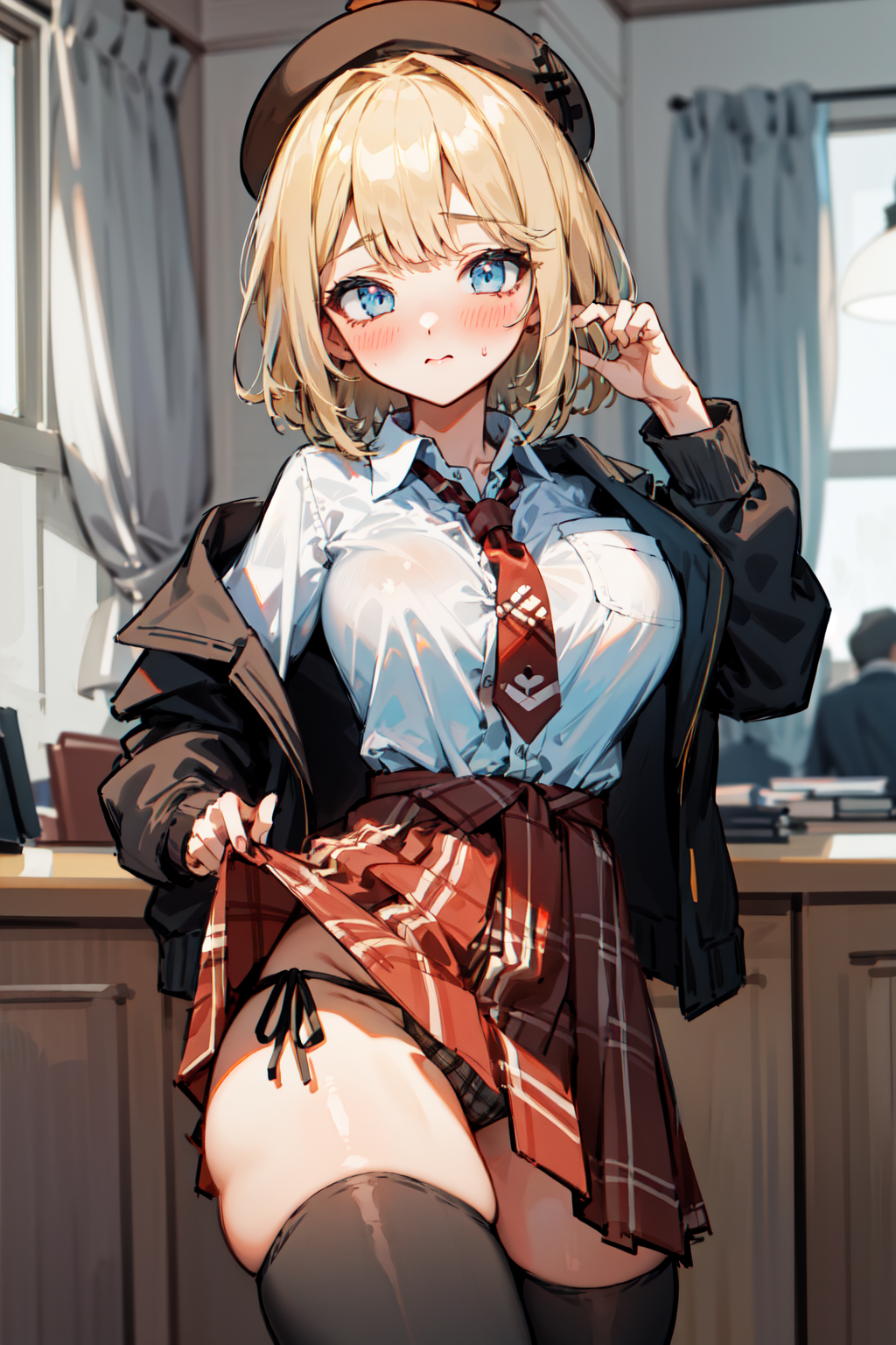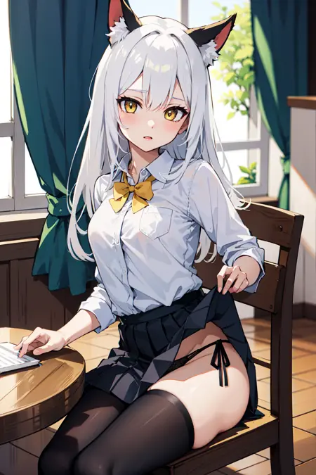 This model has trigger word pantpeek, but for some reason AI sometimes misunderstands it as "pants" and tries to add pants to character. You can try to avoid this by adding (bare legs:1.1) or (thighhighs:1.1), etc to your prompt. Or don't use this trigger word, and use just "panties", it seems to work as well. AI is not really good at drawing small details, so panties tie may not always be good, give it some tries.