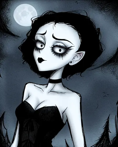 버튼스쿠는 명확하게 정의된 스타일은 아니지만, 카리카처처럼 극단적인 비율과 고딕적인 요소가 매우 두드러진다. 이 모델을 만들면서 즐거웠다. 스타일이 매우 독특하기 때문이다. 기본 모델만으로는 LoRA 없이 이 스타일을 재현할 수 없었다.