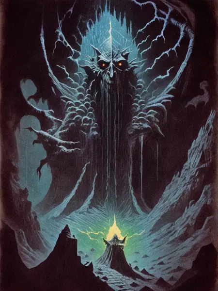 DND_GRAINYBOYZ : ROMULUS V2 - DnD, 그레인리, 노이즈, 1970년대 어두운 판타지 북 커버 페이퍼 아트, 던전과 용기들, 어두운 사이버펑크 스타일 드로잉.