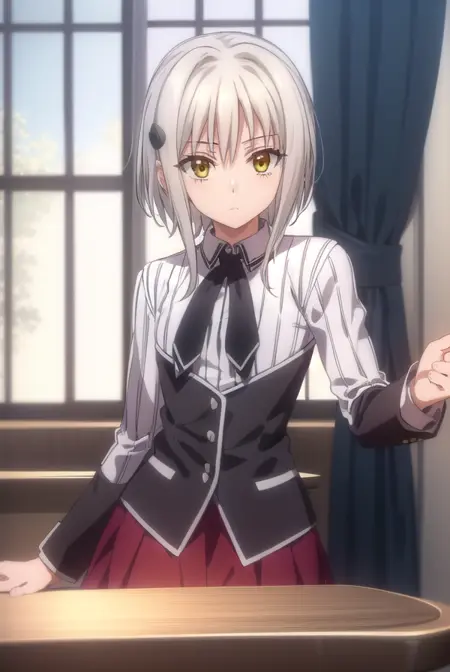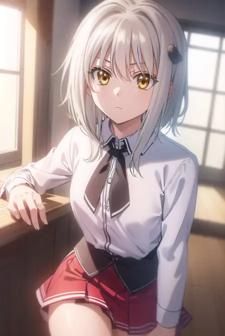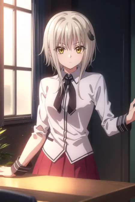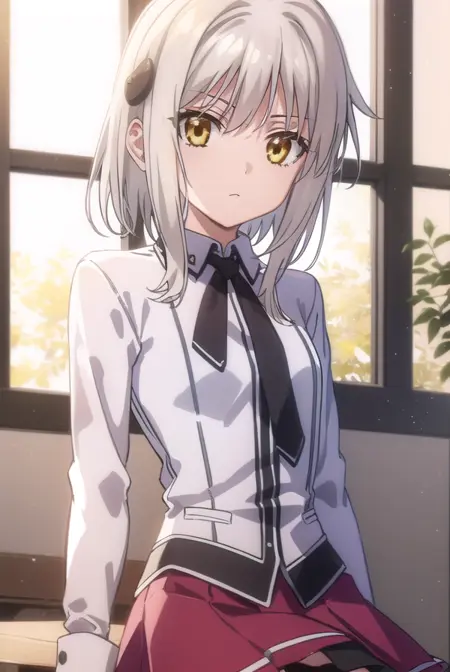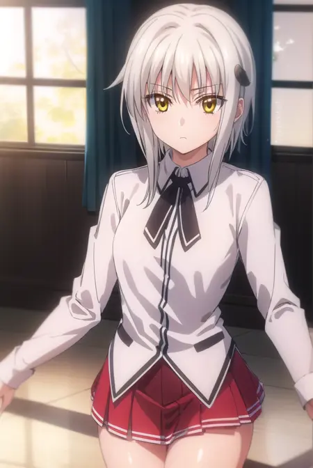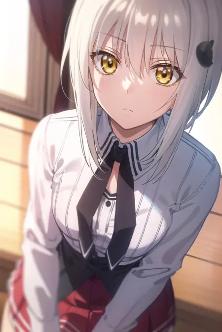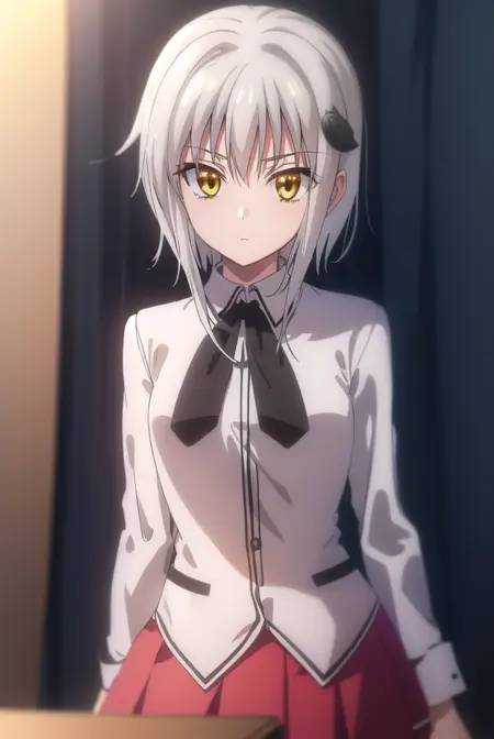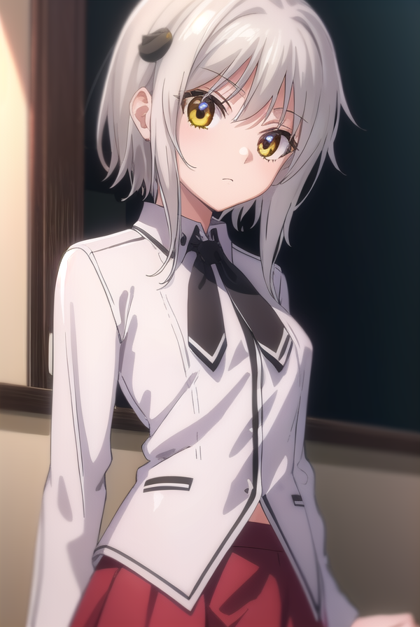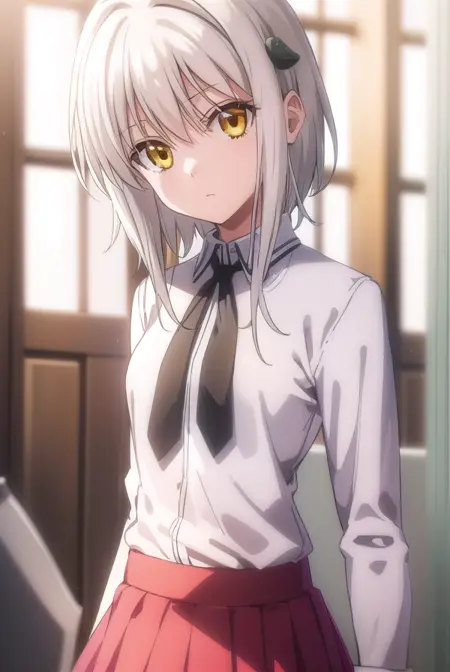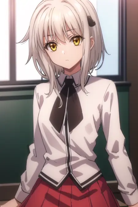 koneko toujou, short hair, hair ornament, (yellow eyes:1.2), white hair,