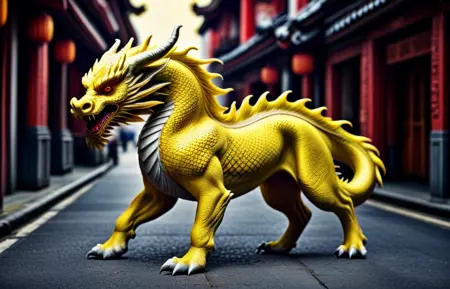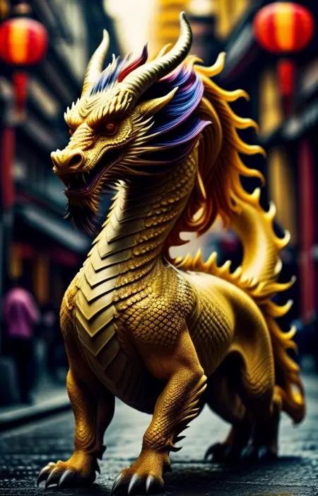 This was one of the checkpoints that best responded to the prompt: a photorealistic image of a, (麒麟, Qilin, dragon, chimeric animal, QilinDragon), a mythical creature in vibrant r41nb0w color, r41nb0w background, mythology