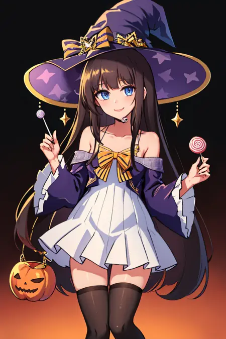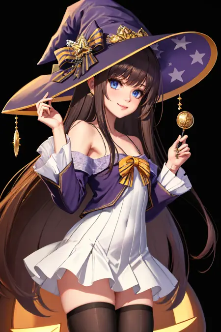 스포oky 스트림: longislandspook, witch hat, dress, bow, detached sleeves, thighhighs, bare shoulders, collarbone