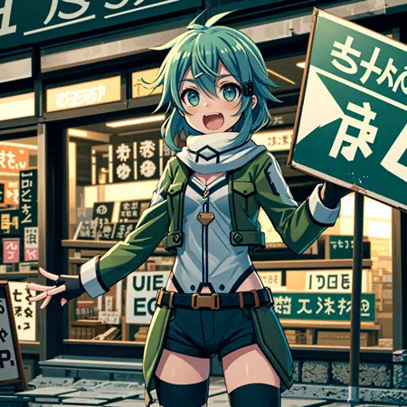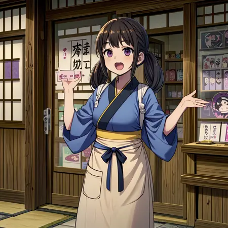 I created a LoRA where my favorite character works as a sales promoter in front of various stores. The settings primarily include mobile phone shops, convenience stores, and Japanese confectionery stores.