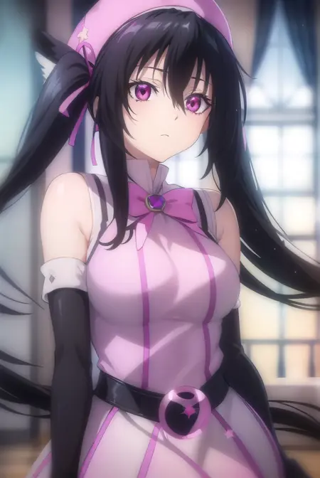 serafall leviathan, 긴 머리, 검은 머리, 두 개의 쌍둥이 꼬리, (분홍색 눈:1.5),