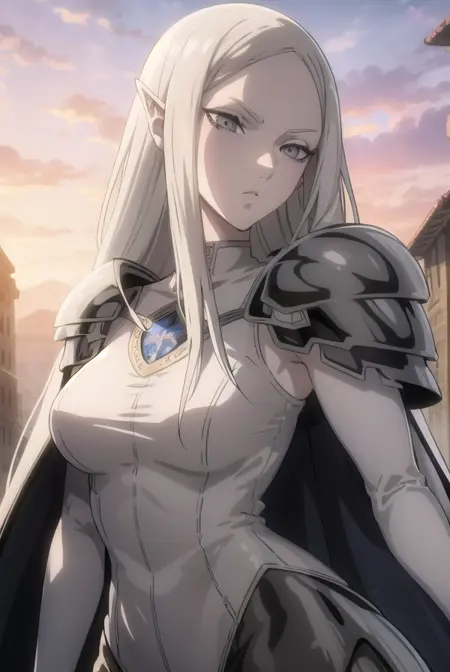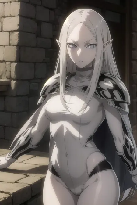 irene, 長い髪, 白髪, 尖った耳, (灰色の目:1.5), 色付きの肌, エルフ, 灰色の肌, ダークエルフ,