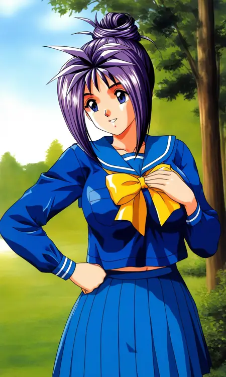 Katagiri_Ayako(Tokimeki_Memorial), 1girl, solo, blue eyes, purple hair, single hair bun, short hair, bangs, large breasts,