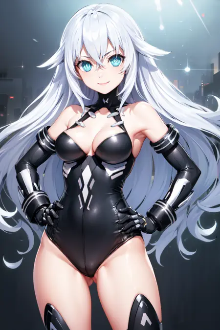 "BlackHeartBase, symbol-shaped pupils, black leotard, elbow gloves, black thighhighs"